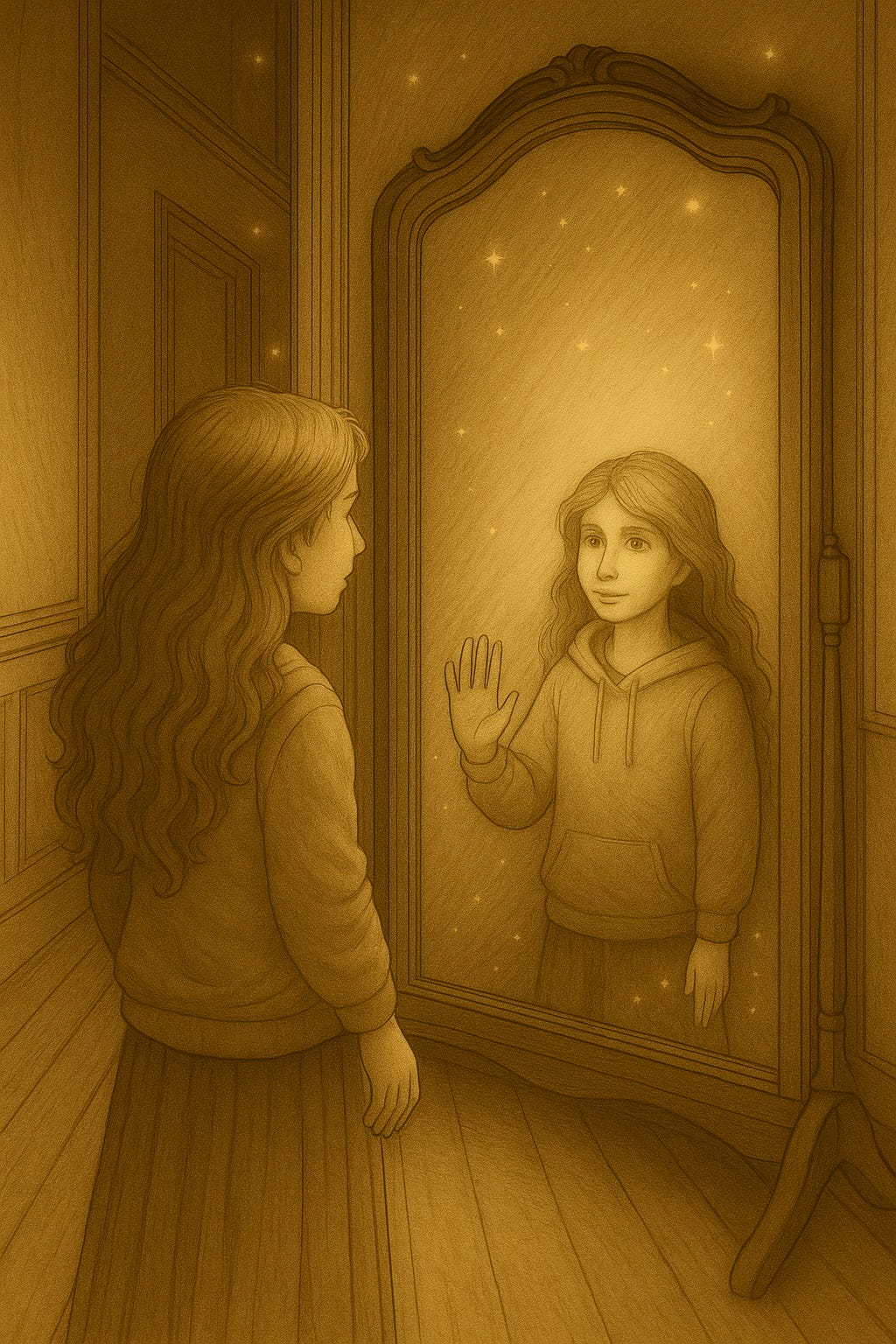 One afternoon, I sat cross-legged on the floor in front of the antique mirror in the upstairs hallway, the one Sarah had nearly removed several times because of my complicated relationship with reflective surfaces.