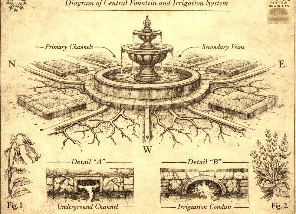 In the Substack serialization of the novella, there’s a scene called “The Estate’s Arteries” where Sarah, James, and Helen discover that what appears ornamental is not ornamental, and what appears separate is not separate. Beneath the visible paths, something is always moving.