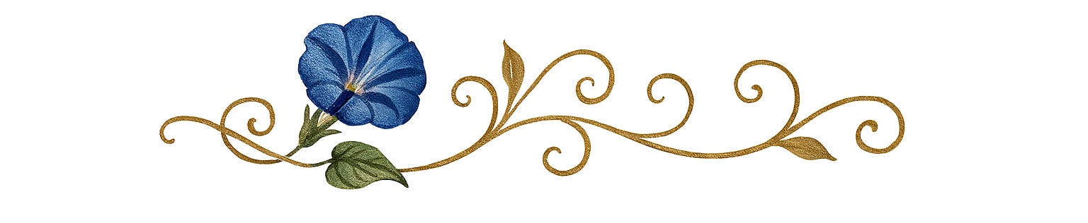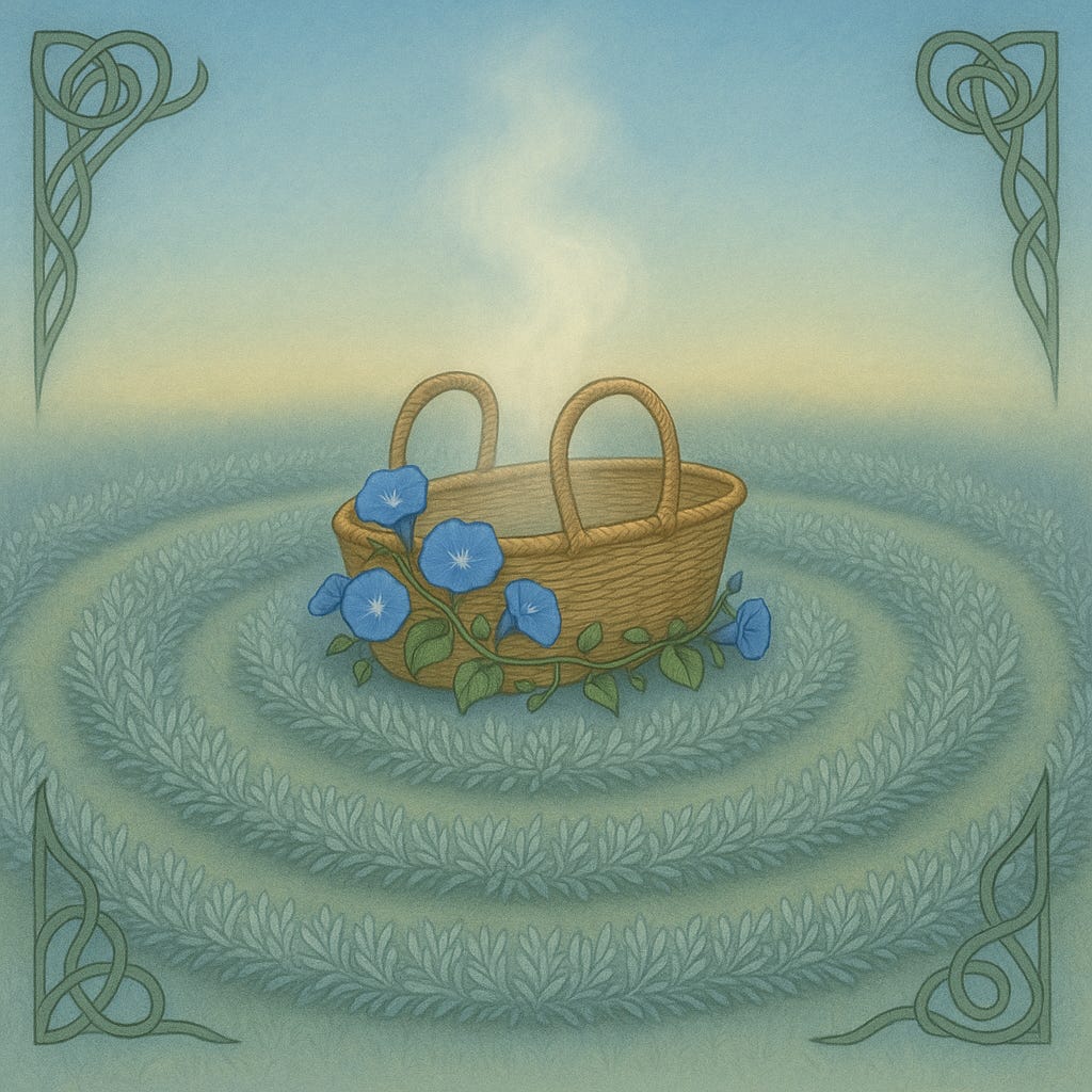 “Charles, please help me get her inside. It’s a miracle she’s not frozen.” During the phone call, the Moses basket became encircled by twining blue morning glories. Did Charles see them, too? Sarah dared not ask, but replaced me in the carrier.