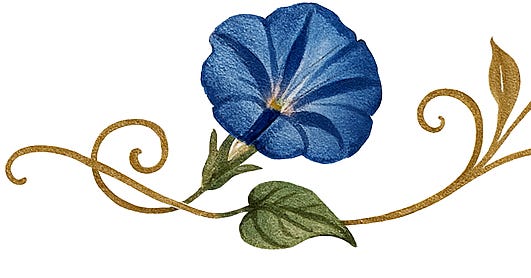 “Charles, please help me get her inside. It’s a miracle she’s not frozen.” During the phone call, the Moses basket became encircled by twining blue morning glories. Did Charles see them, too? Sarah dared not ask, but replaced me in the carrier.
