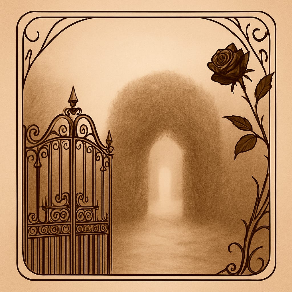 We blew out the candles and stood to leave the Hidden Library. In a wall mirror, a motion—a blur—caught my eye. Three figures were walking together through a garden. Ellen was not alone.